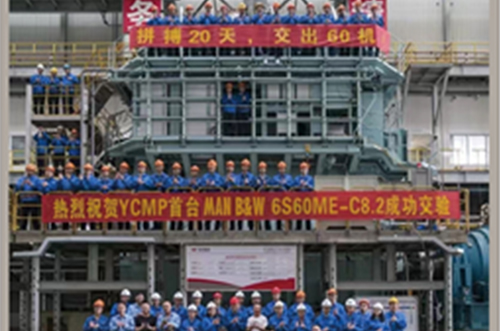 2018年,首臺YCMP-MAN B&W6S60ME-C8.2主機(jī)成功交驗,刷新中國低速機(jī)裝配速度